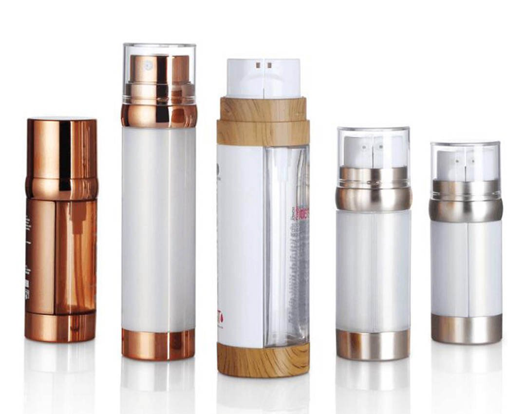 DL03 Çift Bölmeli Losyon Şişesi, %100 hammadde, ISO9001, SGS, GMP Atölyesi, Herhangi bir renk, süslemeler, Ücretsiz numuneler