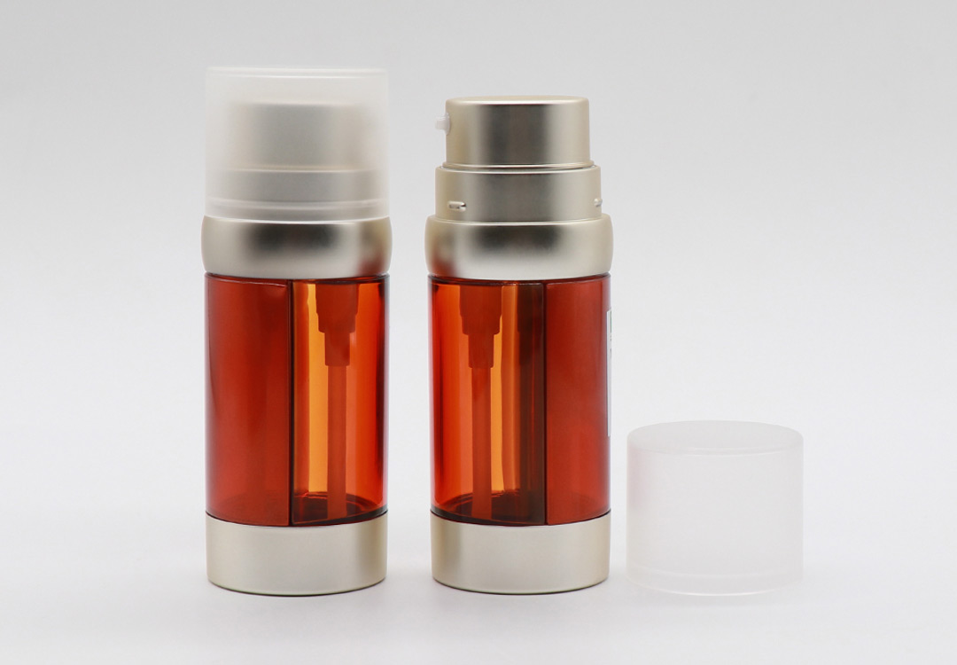 (2). Göz bakım özü için özel çift hazneli şişe, gündüz ve gece kullanımı için 2'si 1 arada şişeler.