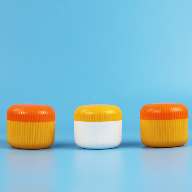 Çocuk cilt kremi kavanozları için markaların genellikle ilk tercihi köşeleri keskin olmayan kavanozlardır.Özelliği, yüzeyinin çocukların kolayca kavrayabileceği dikey şeritlerle kaplı olmasıdır.