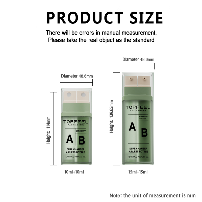 Q: Can I combine different pumps on one bottle? A: Yes! The DA17 dual chamber airless bottle design supports “Spray + Lotion” configuration, allowing you to package a toner and a moisturizer in one unit.