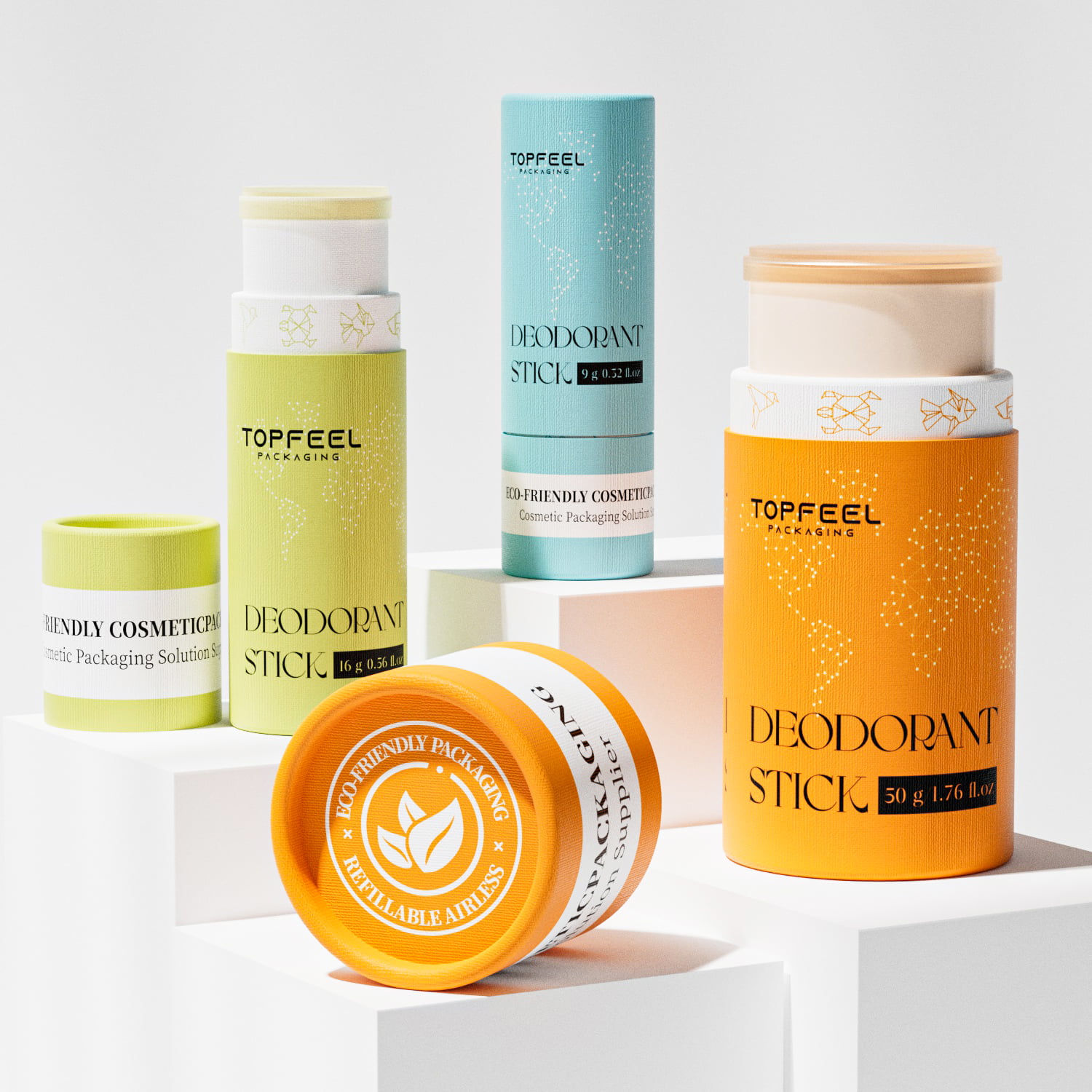 The paper outer tube is a blank canvas for high-impact branding, offering more detailed and sustainable decoration options than many traditional plastic containers.