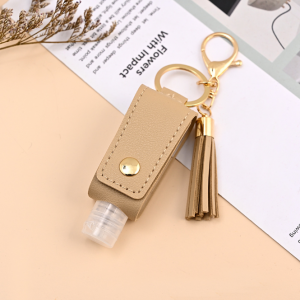 მასალა: პოლიურეთანის ტყავი, PET ბოთლი PP თავსახურით, ლითონის გასაღების ჯაჭვი შამპანურის ფერის