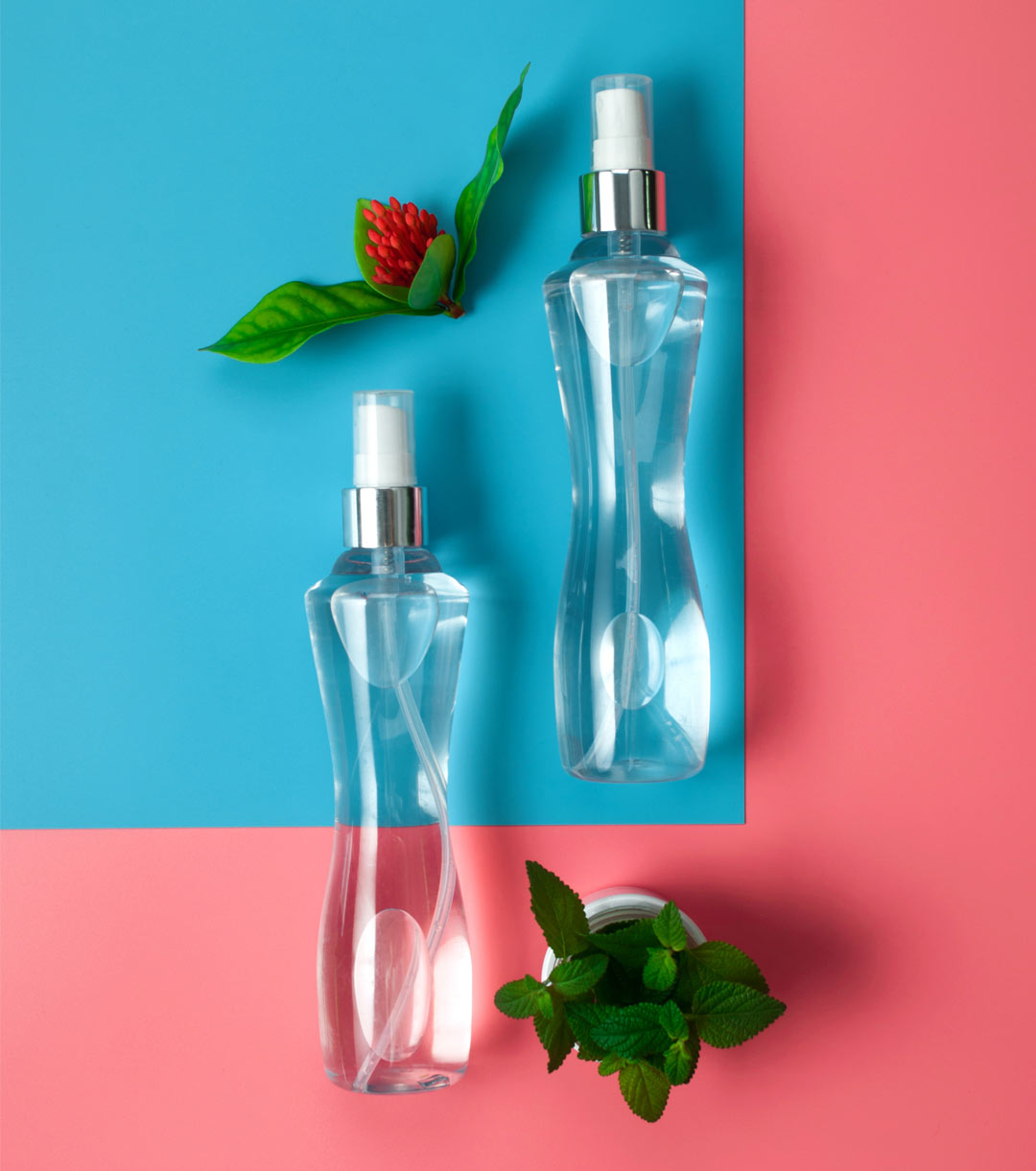 (1) ដបទឹកថ្នាំផ្លាស្ទិច PET/PCR-PET ការវេចខ្ចប់គ្រឿងសំអាង