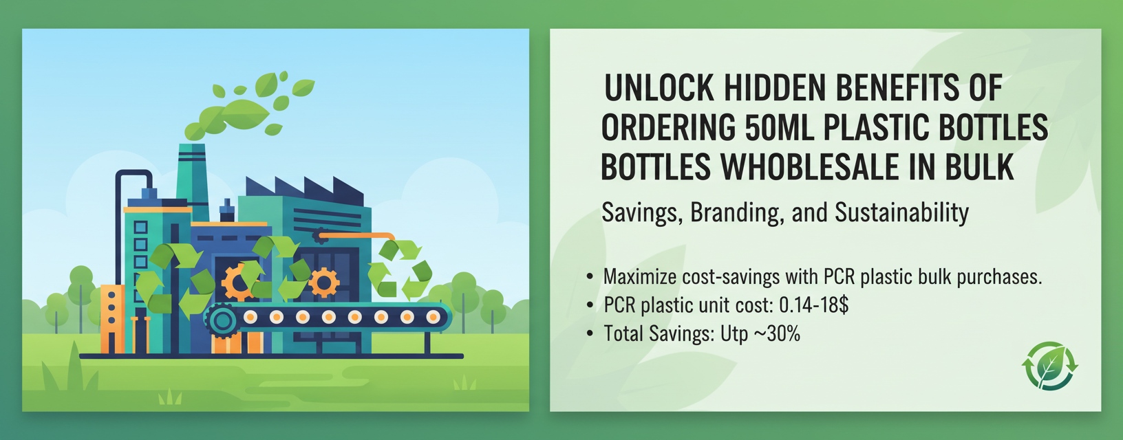 •ការទិញច្រើនការចំណាយលើឯកតា - គណិតវិទ្យាសាមញ្ញ។ នៅពេលអ្នកបញ្ជាទិញរាប់ពាន់គ្រឿង សូម្បីតែកាក់ក៏សំខាន់ដែរ។ នោះហើយជាកន្លែងដែលការសន្សំពិតប្រាកដចាប់ផ្តើម។ •ប្លាស្ទិក PCRផលិតពីជ័រក្រោយអ្នកប្រើប្រាស់ ងាយស្រួលជាងនៅលើភពផែនដីផងដែរ។ វាមិនមែនគ្រាន់តែអំពីតម្លៃទេ - វាគឺជាការយល់ឃើញ។ • ការបញ្ជាទិញដប 50 មីលីលីត្រនៅក្នុងឡូតិ៍លក់ដុំកាត់បន្ថយថ្លៃដឹកជញ្ជូនក្នុងមួយមុខទំនិញ និងកាត់បន្ថយកាកសំណល់វេចខ្ចប់។ អ្នកឈ្នះពីរដង។