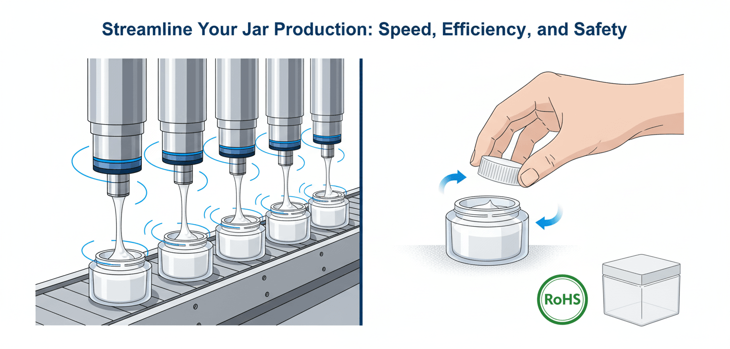 • Mažiau sukimo, daugiau spragtelėjimo: Surinkimo komandoms patinka, kaip greitai jie uždedami – nereikia jokių sukimo momento įrankių. • Jie sandariai užsandarina nesulėtindami konvejerio juostos greičio. • Ypač tinka tirštesniems balzamams ar vaškams, kuriems nereikia hermetiškų užsukamų dangtelių.