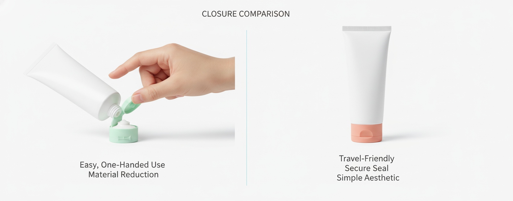 O jei ieškote pritaikomų variantų visiems šiems uždarymo tipams? „Topfeelpack“ siūlo individualiai pritaikytus sprendimus, kurie derina funkcionalumą ir formą, tuo pačiu išlaikant tvirtą jūsų losjono tūbelių pasirinkimą nuo gamybos linijos iki vonios kambario stalviršio.