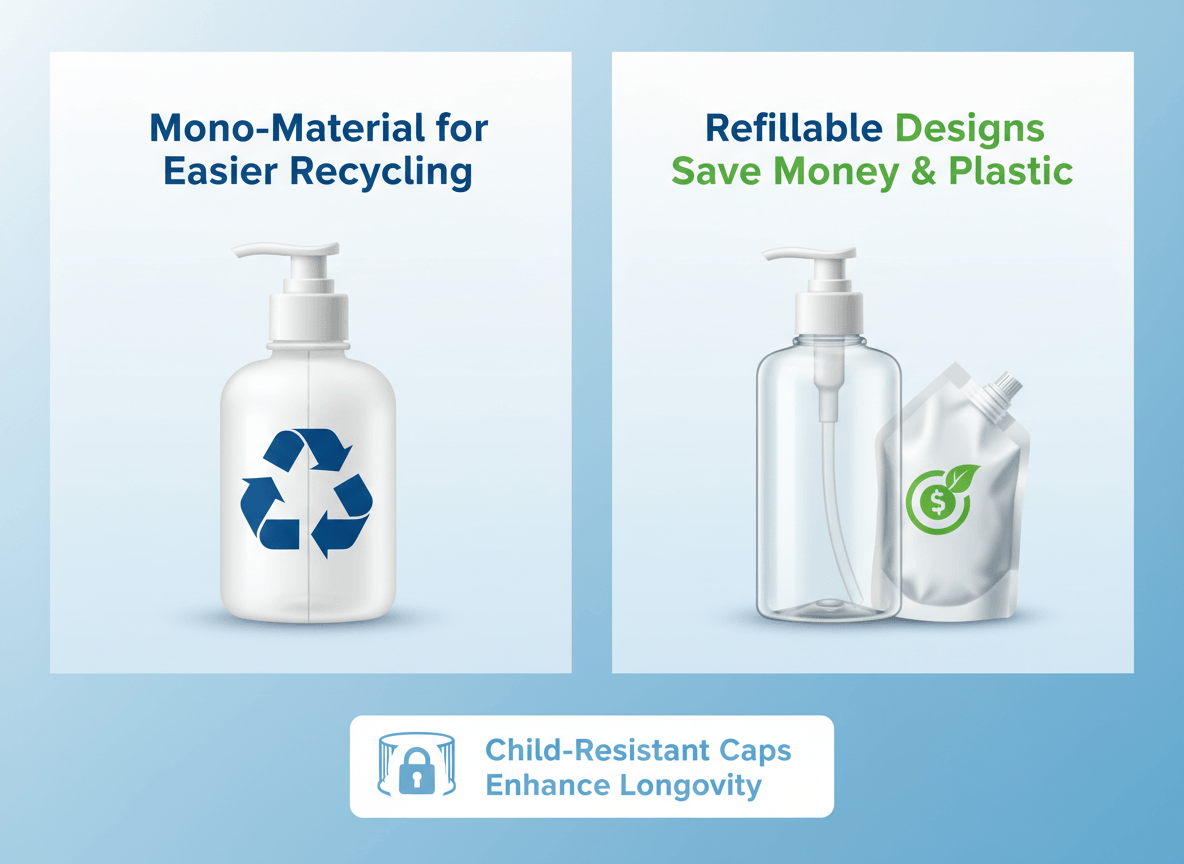 Kuklus drėkinamojo kremo buteliukas su pompa gali atrodyti paprastas, tačiau iš vienos medžiagos pagaminti produktai užkulisiuose atlieka sunkų darbą. Jie palengvina priežiūrą.medžiagų suderinamumas, sumažinti atliekas rūšiavimo metu ir pagerinti bendrą perdirbimo galimybes. Štai kodėl vis daugiau prekių ženklų atsisako sudėtingų hibridų ir renkasi supaprastintas medžiagas, tokias kaipPP or LDPE, kurie vis dar užtikrina tvirtącheminis atsparumasnepakenkiant formai ar pojūčiui. Praktinių dizaino taisyklių žr.APR Design® vadovas.