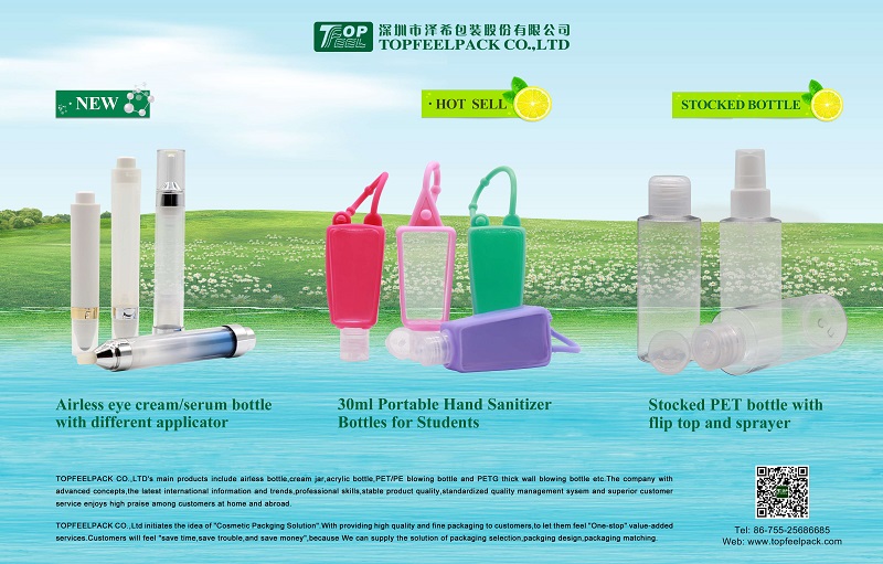 1. Airless Eye Cream Serum Bottle With Different Applicator. 2. 30ml Portable Hand Sanitizer Bottles For Students. 3. Stocked PET Bottle With Flip Top And Sprayer. Post time: Jul-10-2020