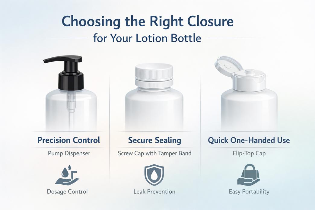 Choosing the right closure for your empty lotion bottle makes all the difference in usage, shelf appeal, and consumer trust.