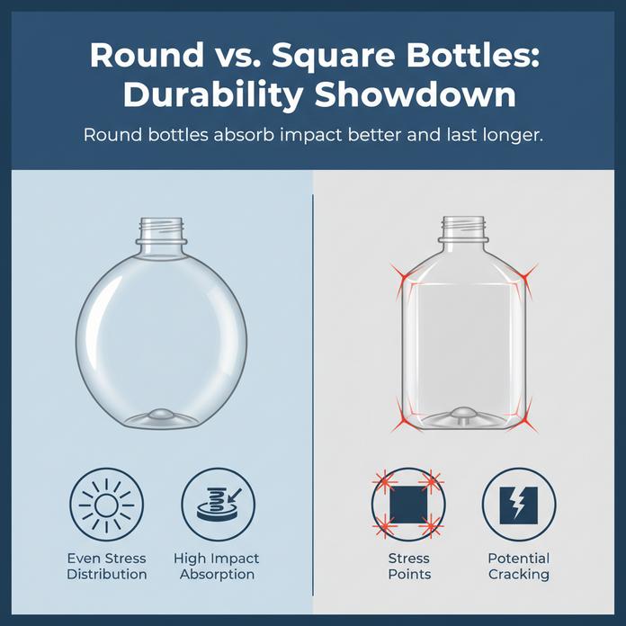 → Durability Edge: Due to their curved shape, round bottles better distribute impact pressure, reducing the chances of breakage.