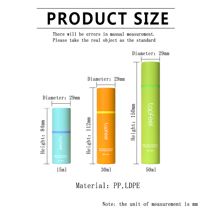 Airless Technology: The airless design minimizes air exposure, maintaining product freshness and extending shelf life. Ideal for sensitive formulations like serums, creams, and lotions.