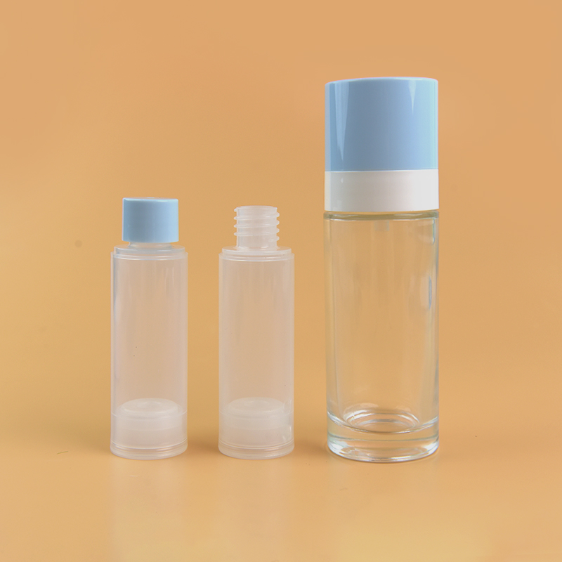 Our replaceable glass bottle is mainly composed of glass and PP materials. In order to help customers create an economical, environmentally friendly and recyclable cosmetic brand concept, it adopts a personalized design with a replaceable container liner. In the future, Topfeel will continue to explore more environmentally friendly packaging solutions that reduce plastic and carbon, and strive to practice the concept of green environmental protection.