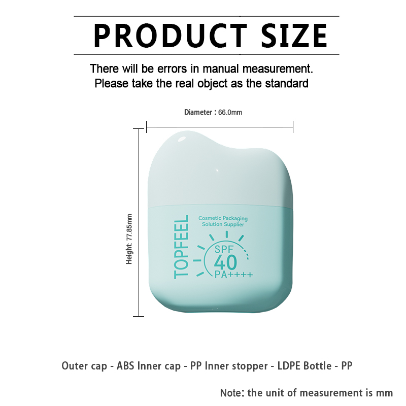 The 30ml/50ml capacity precisely meets the needs of travel, daily sunscreen, children's sunscreen, etc., and can be easily put into pockets, cosmetic bags, and carry-on bags.