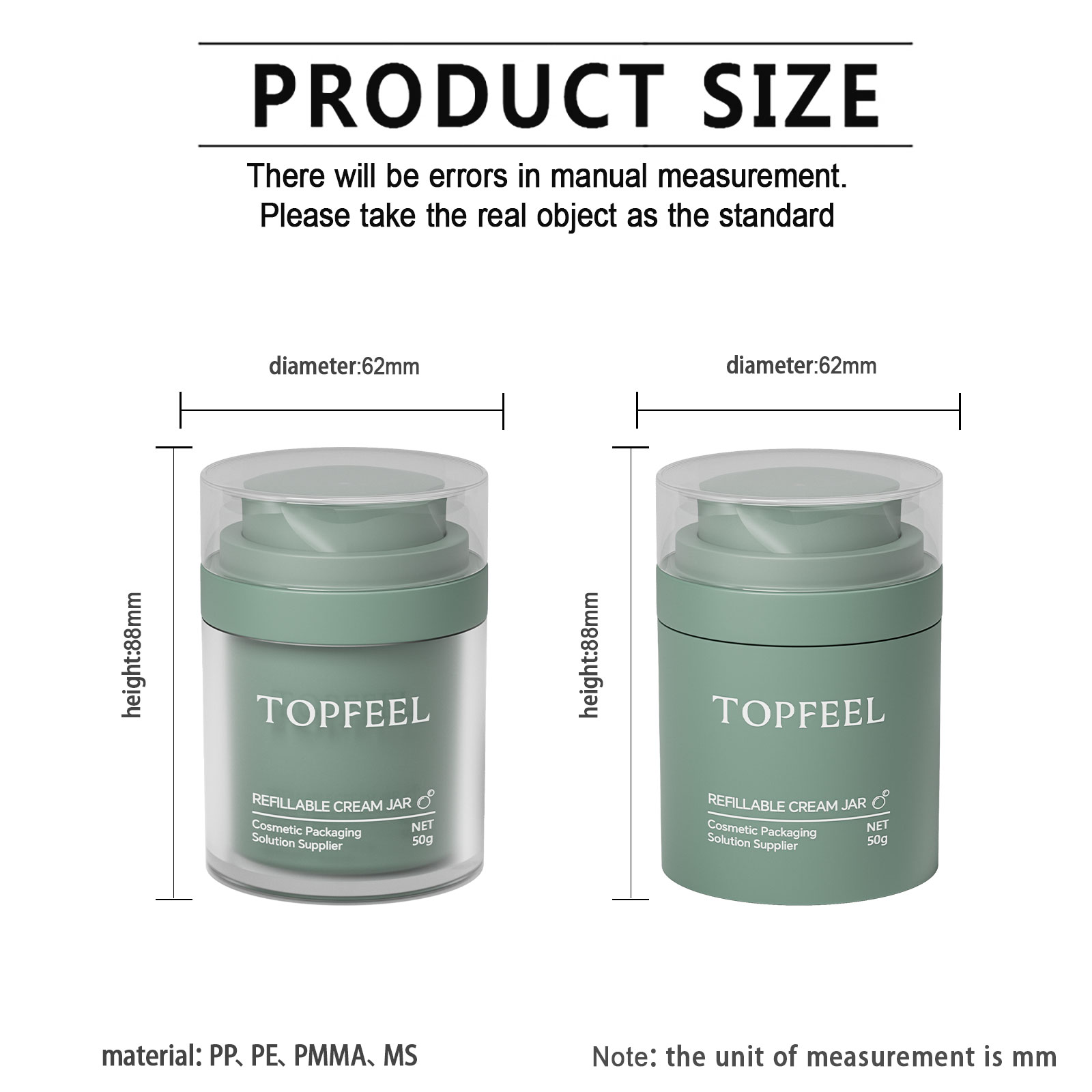| PJ95 | 50г | D62*88мм | Шишаи беруна: PMMA Шишаи дохилӣ: PP Сарпӯши: MS |