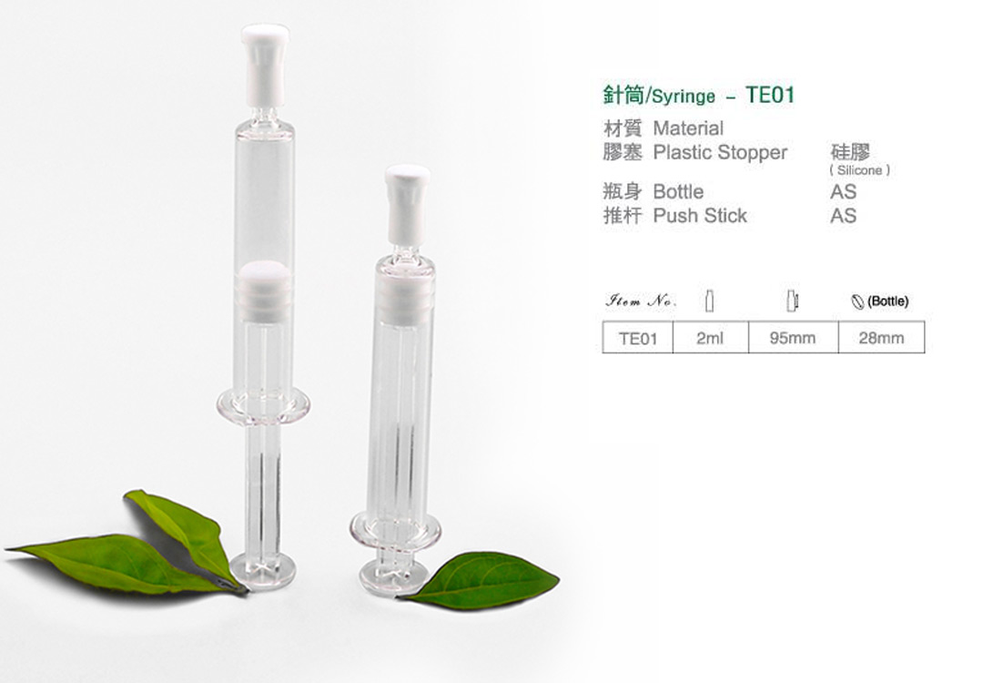 TE01 Kozmetik Şırınga, %100 hammadde, ISO9001, SGS, GMP Atölyesi, Herhangi bir renk, süslemeler, Ücretsiz numuneler