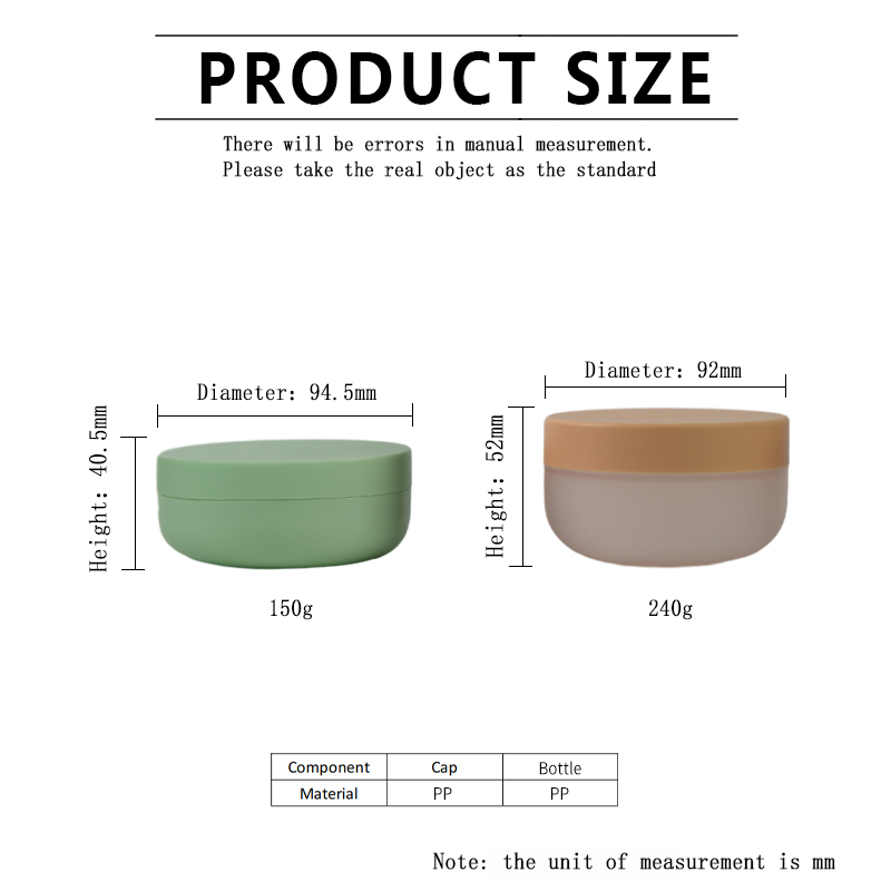 Ми вважаємо, що наші повністю перероблювані контейнери для косметики з поліпропілену – це не лише сталий та екологічний вибір, але й демонстрація нашої відданості постачанню високоякісних та інноваційних продуктів. Обираючи одну з наших банок, ви приймаєте розумне рішення для підтримки більш сталого майбутнього, насолоджуючись перевагами надійного та стильного контейнера для догляду за шкірою.