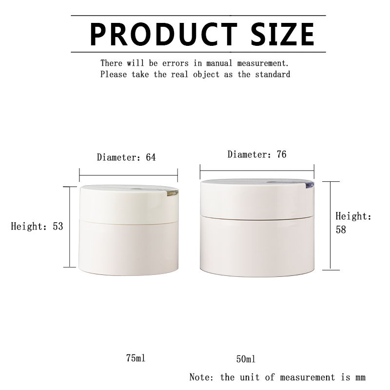Існує 2 розміри, щоб задовольнити різні потреби крему, лосьйону для тіла, скрабу, маски для обличчя. Внутрішня чашка знімна, тому покупці можуть замінити стару на нову, коли вона закінчиться. Завдяки багаторазовому використанню зменшується забруднення навколишнього середовища, а також формується довіра до бренду та повторні покупки.
