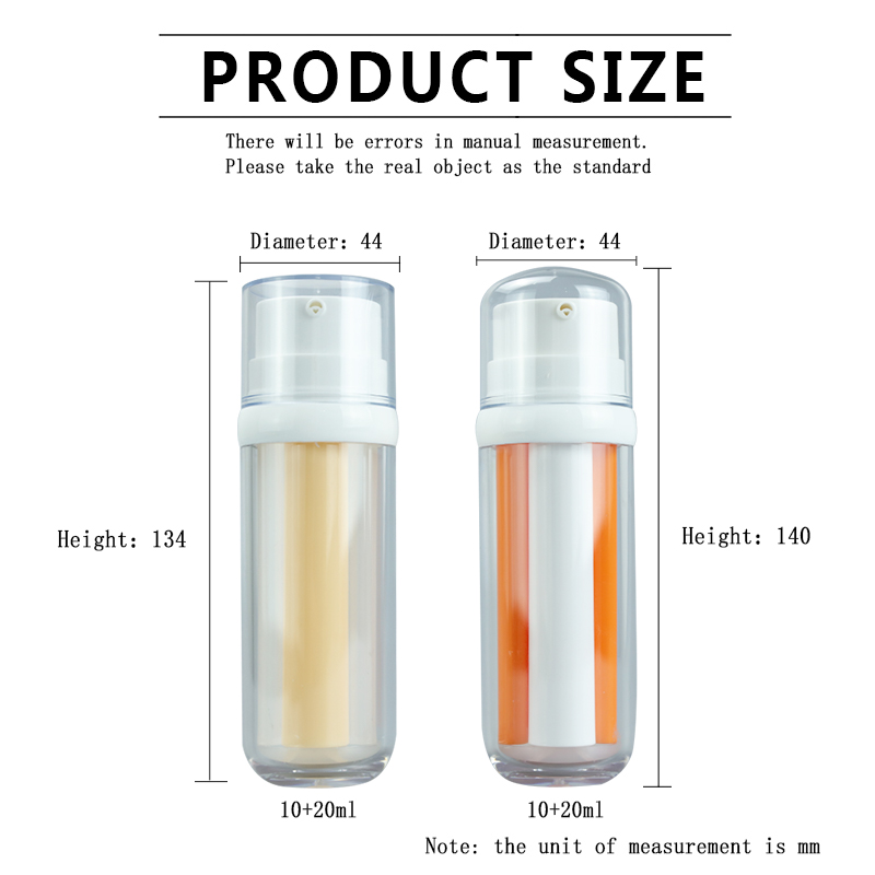 Chai PL41 hai ống, thiết kế đặc biệt có 2 kích cỡ khác nhau trong 1, thích hợp để đựng hai loại serum, tinh chất, kem, sữa dưỡng thể, v.v.