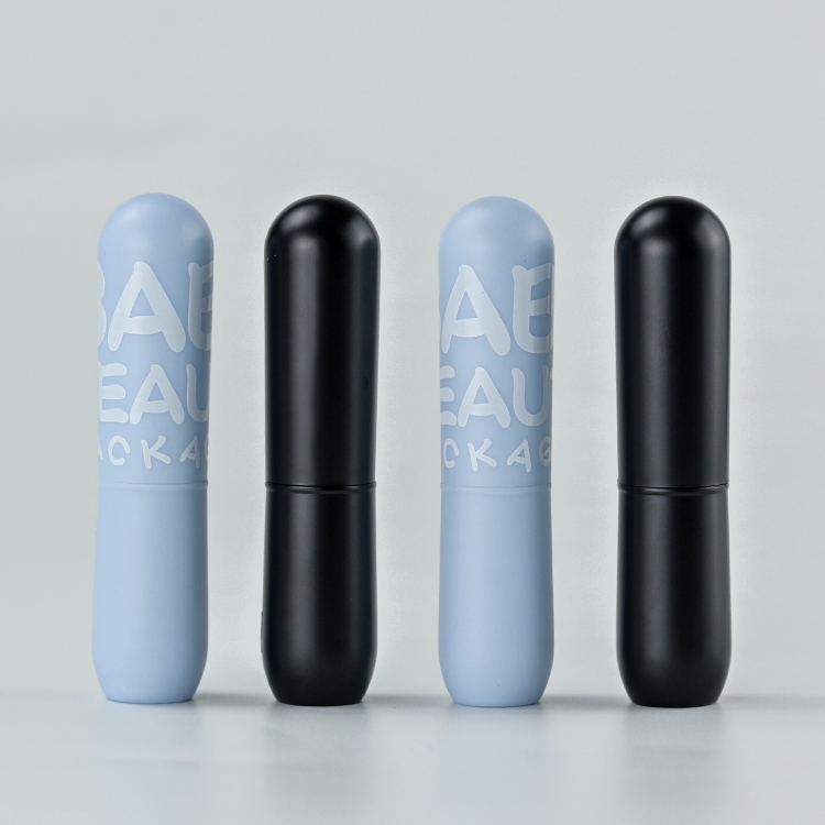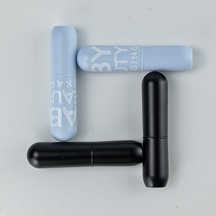 如图所示的空黑色唇膏管也可以定制为带印花的蓝色唇膏管。大大的LOGO设计让管子看起来十分可爱。更适用于口红、唇部防晒霜、唇膏等唇膏的包装。